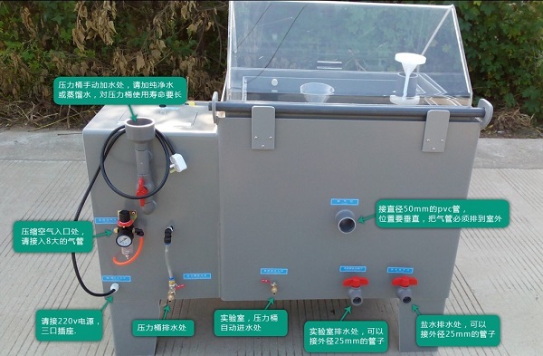 鹽霧腐蝕箱是模擬天氣環境和海洋氣候,是用來對金屬產品的防護層及其他產品一種人工模擬鹽霧環境的試驗測試;是利用含鹽溶液或酸性含鹽溶液,在一定的溫度和相對的濕度的環境下對材料或產品進行加速腐蝕,測試材料或產品在一定時間范圍內所遭受的破壞程度。